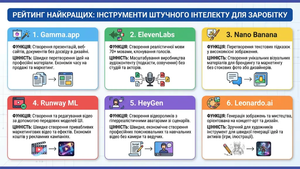 Рейтинг найкращих: інструменти штучного інтелекту для заробітку